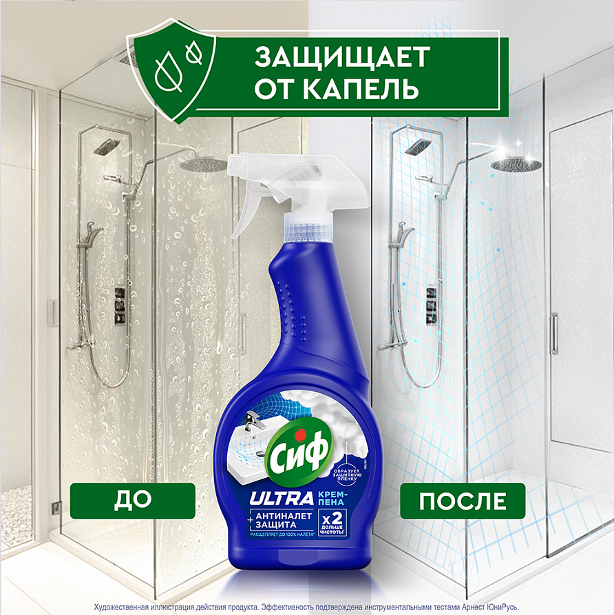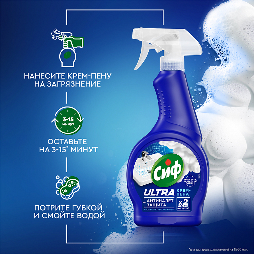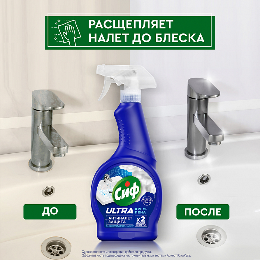 Чистящее средство спрей Антиналет для сантехники Сиф — это ваш надежный помощник в борьбе с загрязнениями в ванной и туалете. Разработанная с использованием передовых технологий, эта крем-пена для уборки эффективно расщепляет до 100% налета', не повреждая поверхности** и не оставляя резкого запаха. Преимущества: ● Эффективность: уникальная формула спрея позволяет быстро и без усилий удалить известковый и мыльный налет, возвращая блеск вашим сантехническим изделиям. ● Защита: чистящее средство для ванной и унитаза образует защитную пленку, которая предотвращает повторное появление загрязнений. Таким образом, чистота сохраняется до 2-х раз дольше*. ● Безопасность: средство от известкового налета на 100% безопасно** для всех типов сантехники, включая ванны, раковины, душевые кабины и керамическую плитку. Состав: Средство для чистки сантехники, ванны и раковины содержит активные компоненты, которые эффективно расщепляют налет. Универсальное средство для уборки Антиналет – это на 100% эффективный и безопасный к поверхностям в ванной** продукт. Средство от налета в ванной подходит для всех видов сантехники, включая хромированные поверхности и керамическую плитку. Крем-пена Сиф превратит ваш санузел в ухоженное, уютное место. Сиф - ваш дом красив! 'очищение до 100% известкового налета по результатам инструментальных тестов, при соблюдении рекомендаций по применению и мер предосторожности. *инструментальные тесты, действие до 2-х раз дольше в сравнении с аналогичным средством без защитных компонентов. ** при соблюдении рекомендаций по применению и мер предосторожности.