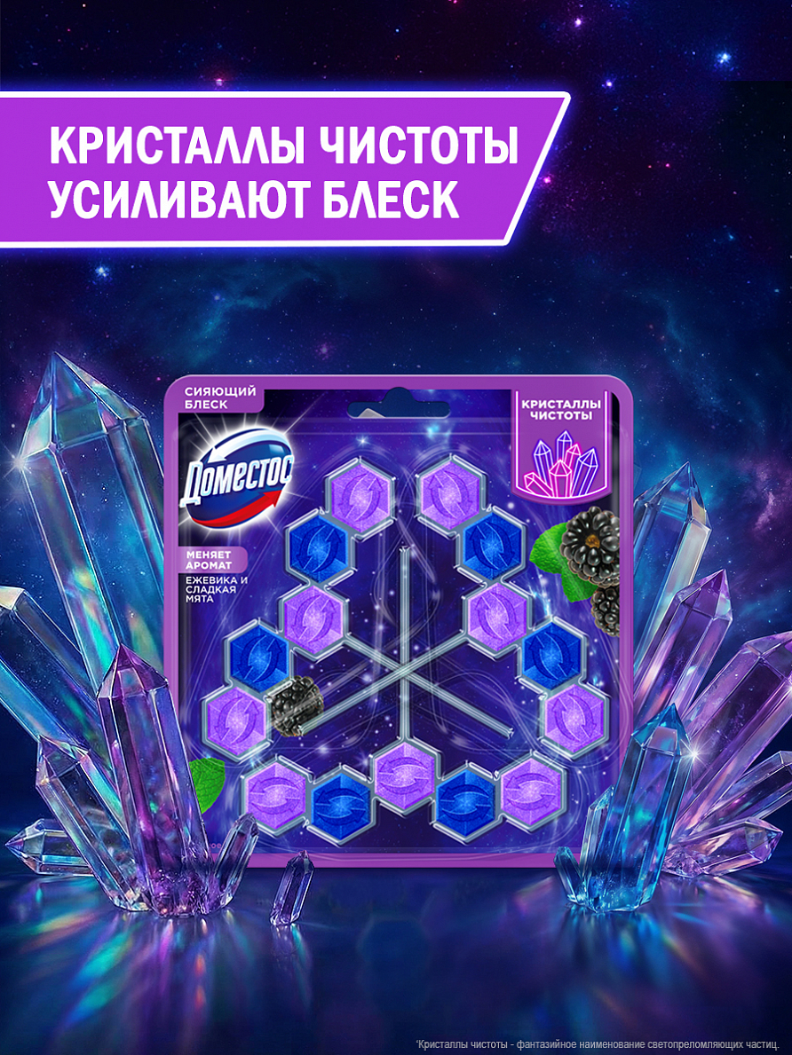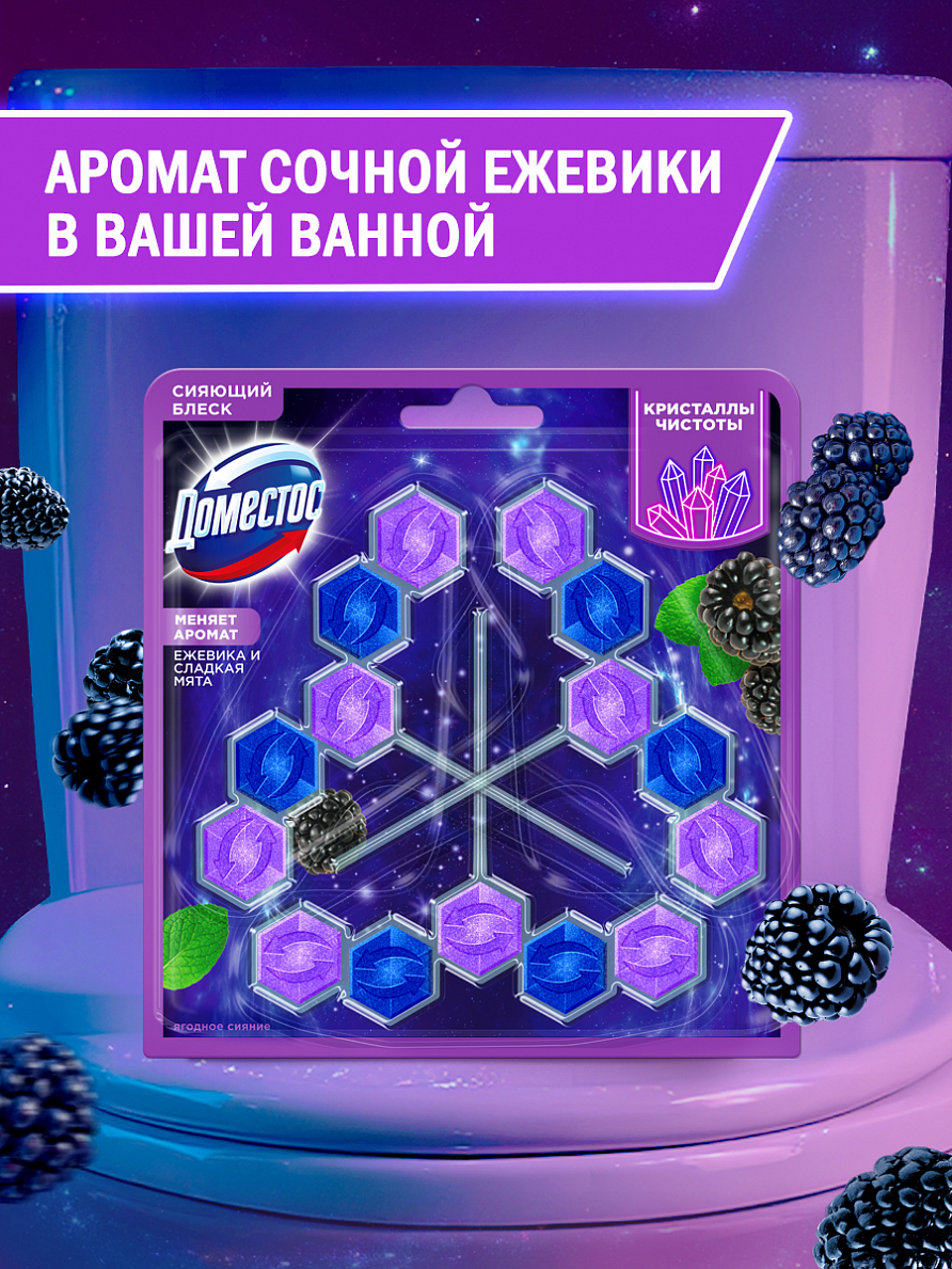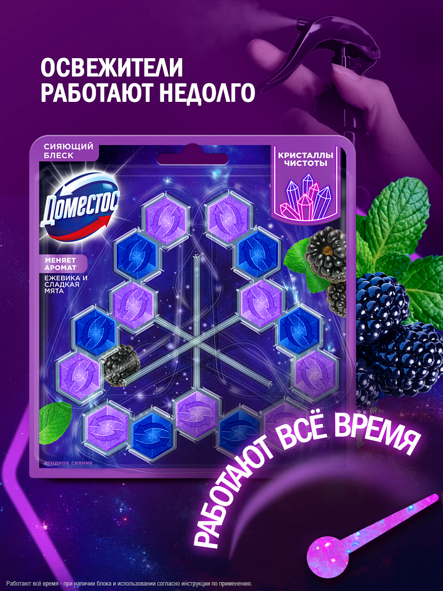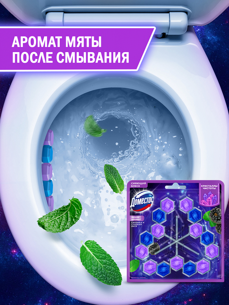 • Вскройте пластиковую упаковку и достаньте блок • Поместите блок под ободок унитаза в место наиболее сильного потока воды с помощью держателя (предварительно разорвав перемычку при ее наличии). • По окончании использования блока выбросите его в мусорное ведро и установите новый блок Доместос • Тщательно вымойте руки