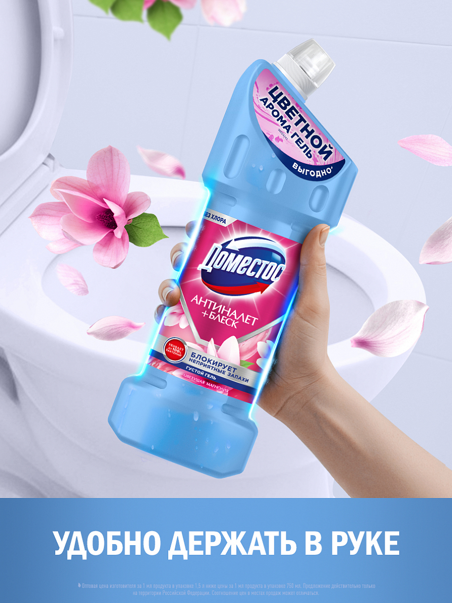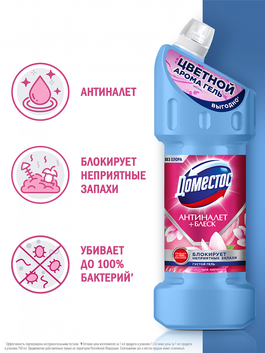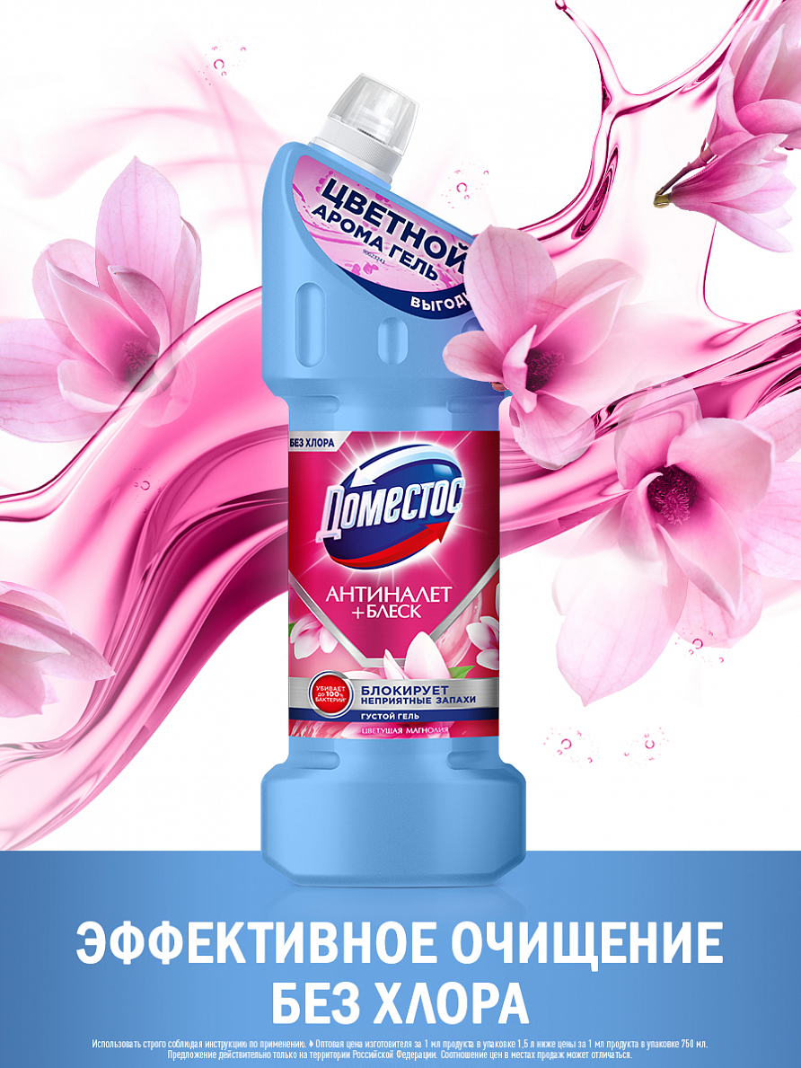 Применение Доместос в неразбавленном виде: - Унитаз: нанесите Доместос под ободок унитаза и оставьте на 60 минут, можно оставить на ночь. Для максимального эффекта используйте средство по крайне мере раз в день. - Раковины и ванны: нанесите Доместос на поверхность и обработайте с помощью щетки. Тщательно смойте. Для антибактериального эффекта - оставьте на 60 минут. Применение разбавленным: - Кафель, полы, рабочие поверхности: 100 ml Доместос на 4 л воды. Не используйте неразбавленным для мытья полов.